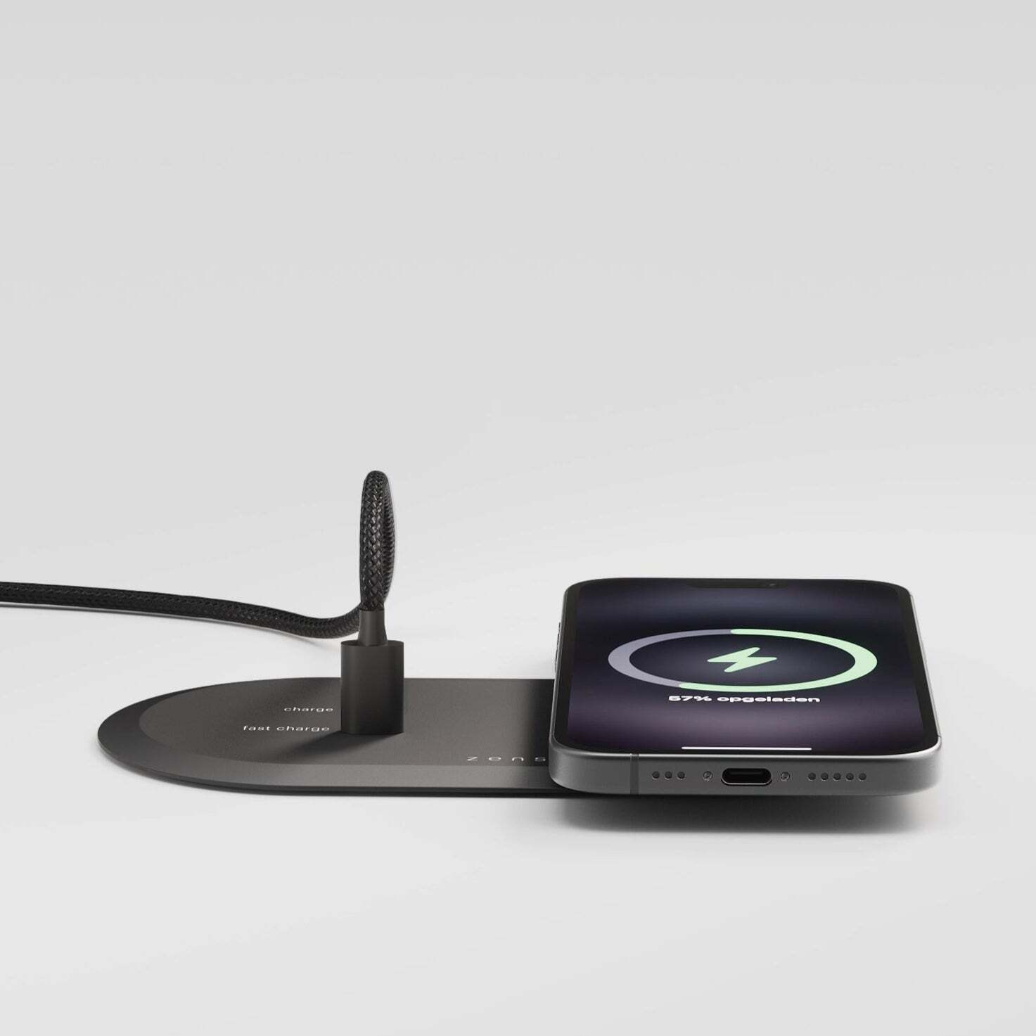 Naast een krachtige 15W draadloze oplader biedt de PuK Combi 2 USB-C-poorten met een gecombineerd vermogen van 120W. Bij gelijktijdig gebruik levert dit 100W op de ene poort en 20W op de andere.