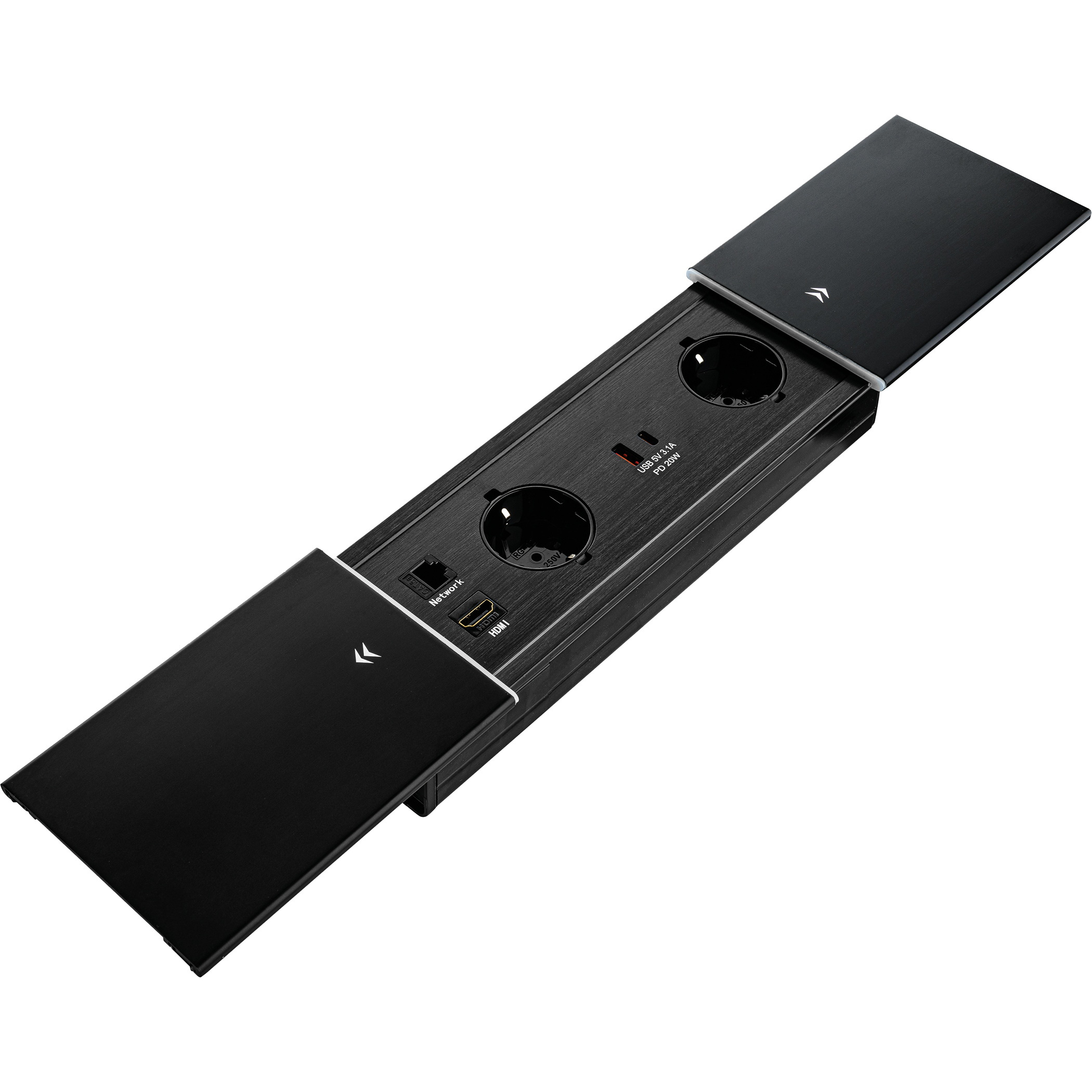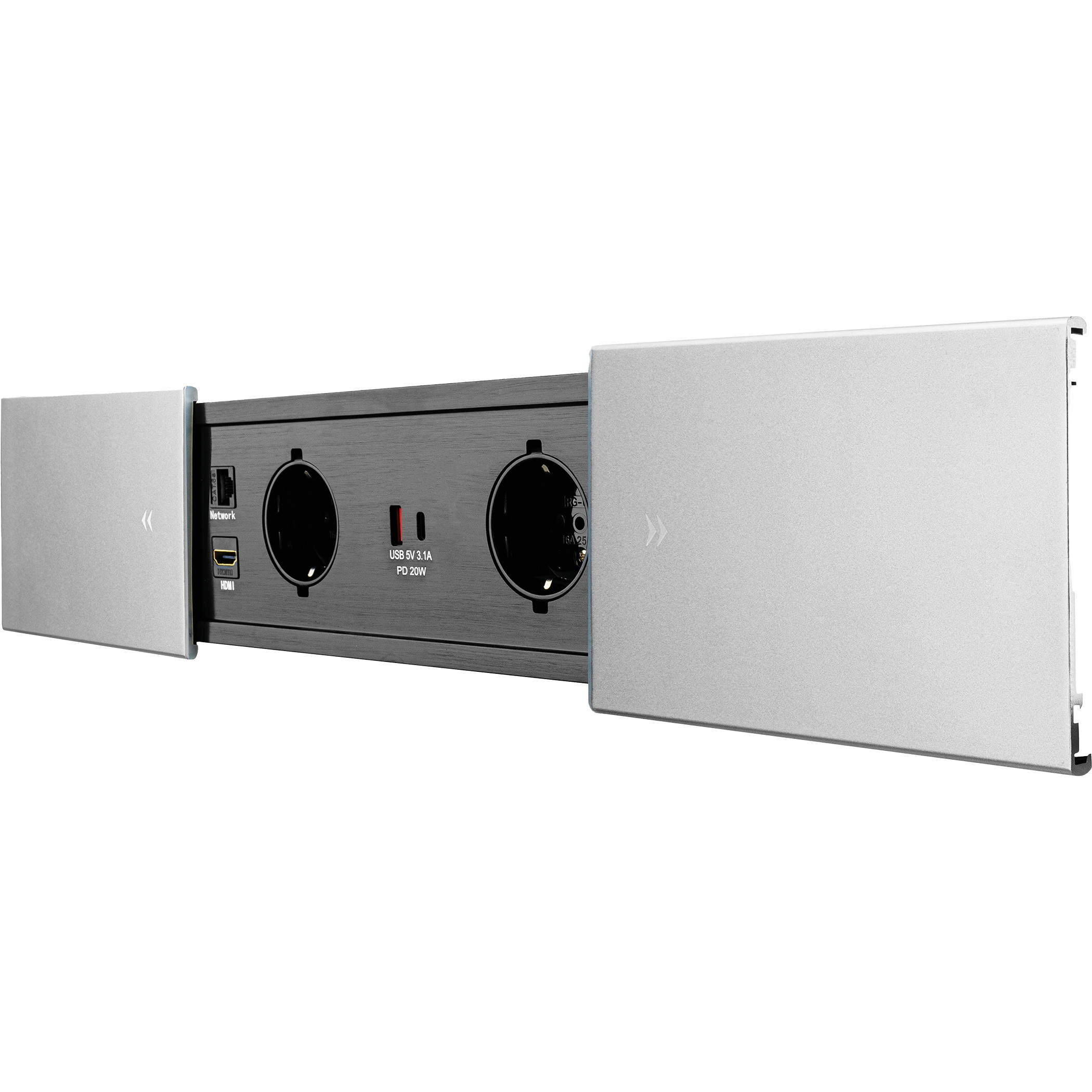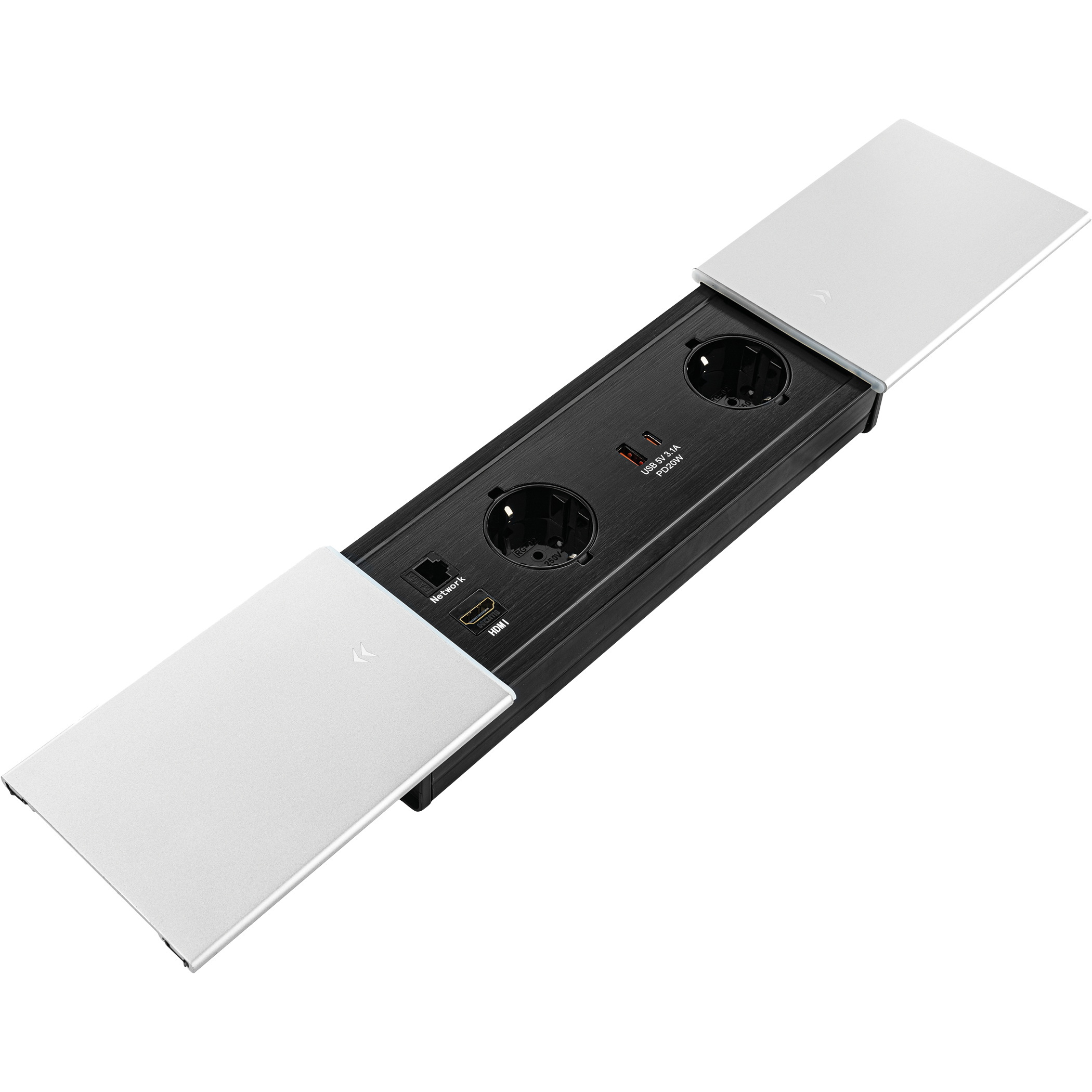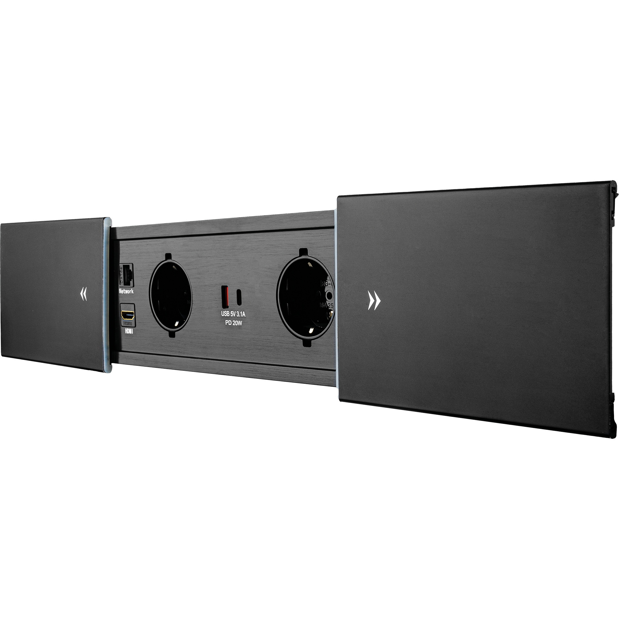 - Inclusief 2 x 230V (type F), 1 x USB-A C, 1 x Cat6a en 1 x HDMI-poort