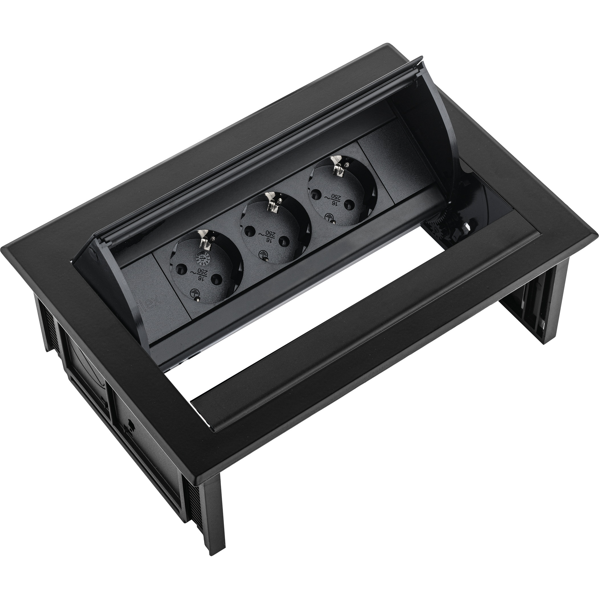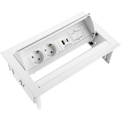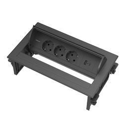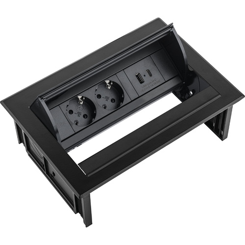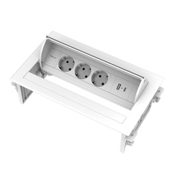 De Power Desk In is een nieuwe electrificatie inbouwmodule voorzien van een push-to-open deksel en een vaste kabel van 1 meter met een eGST male steker