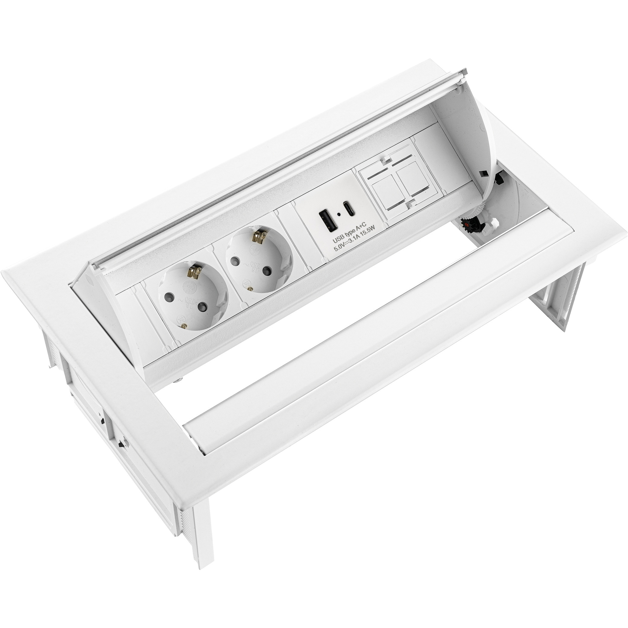 - 2x stroom + USB A+C charger + 1x lege moduleplaats