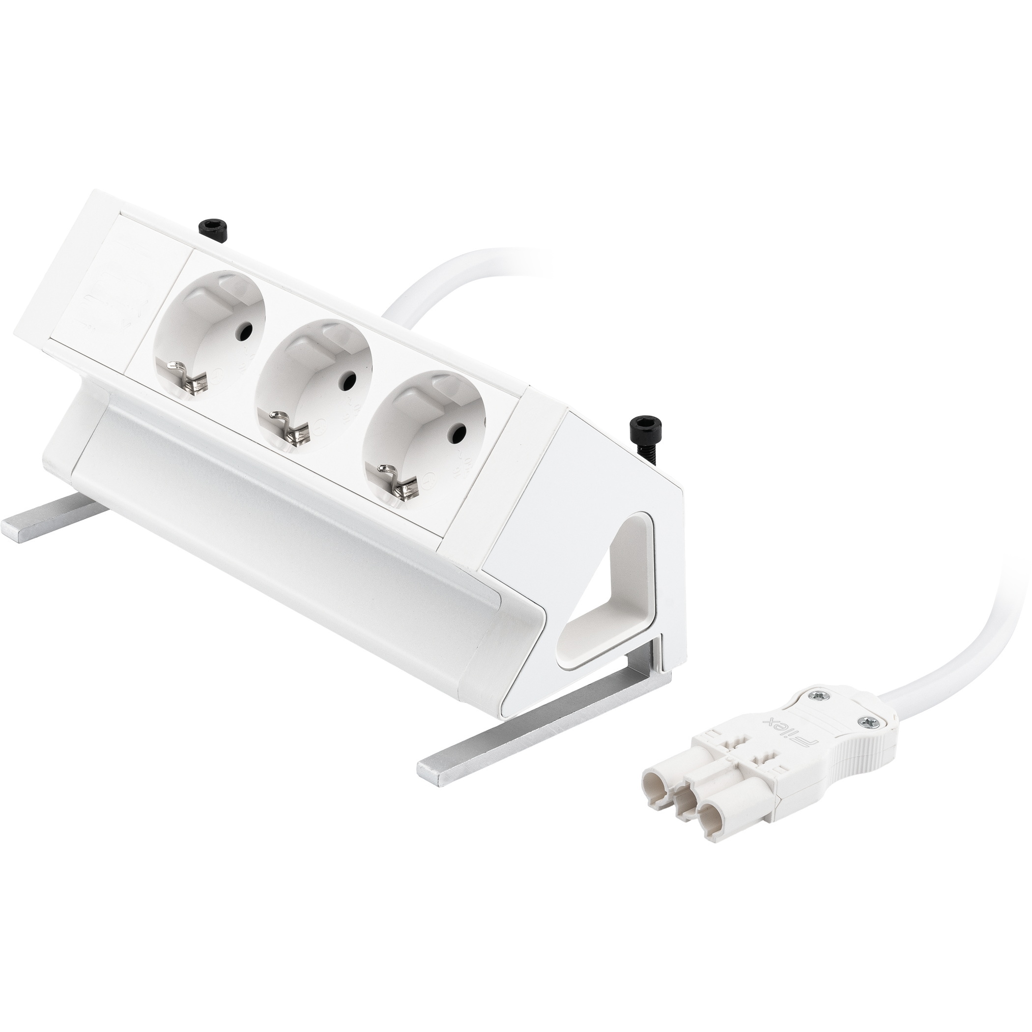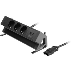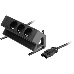 De Power Desk Up wordt met bladklemmen aan het blad gemonteerd. (montage vanaf de bovenzijde van de module). Het klembereik van de bladklemmen is 15-45mm.Standaard configuraties (allen voorzien van 1m kabel met een 3-polige male steker):